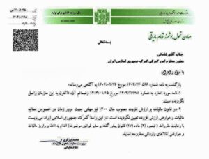 بازگشت به نامه شماره ۱۴۰۴/۲۴۰۵۶۶ مورخ ۱۴۰۴/۰۷/۲۴ و پیرو نامه شماره ۱۴۰۴/۲۳۶۷۸۸ مورخ ۱۴۰۴/۰۷/۱۵ به آگاهی میرساند:
