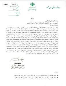 • جناب آقای خسروتاج، رئیس محترم اتاق بازرگانی، صنایع، معادن و کشاورزی ایران – جهت آگاهی