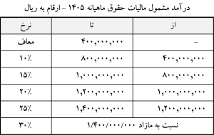 در مصوبه کمیسیون تلفیق میزان معافیت حقوق و نرخ مالیات حقوق سال آتی به شرح ذیل می باشد .