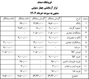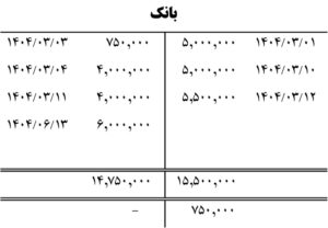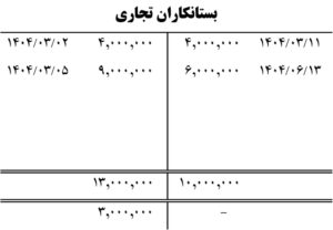 نه خرداد 1404 : فروش کالا به مبلغ 10.500.000 ریال به صورت نسیه