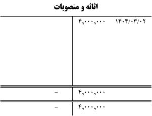 دوم خرداد 1404 : خرید نسیه میز و صندلی و اثاثیه فروشگاه به مبلغ 4.000.00 ریال