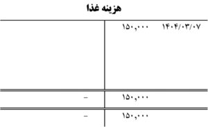 هزینه غذا 150.000 بدهکار