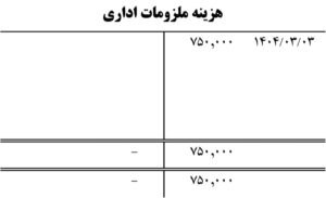 سوم خرداد 1404 : خرید ملزومات اداری فروشگاه به مبلغ 750.000 پرداخت از بانک